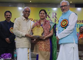 Prof. Hymavathi Bhattar has been honored with several titles, including “Daivagna Ratna”, “Jyotisha Acharya”, “Jyotisha Choodamani”, “Jyotisha Gnana Saraswathi”, and “Jyotisha Kalanidhi” in recognition of her significant contributions to astrology. "Her research thesis, published in 2019, received acclaim from her mentors and fellow astrology enthusiasts. Titled Stellar Effects – Planetary Aspects and Reflections, it now serves as a valuable reference for astrology students at the institute. She has also authored another well-received work, “Marriage Compatibility” – Identifying a Spouse’s Lagna and Nakshatra through Jeeva and Sareera, which reflects her deep knowledge and insightful approach to the subject."